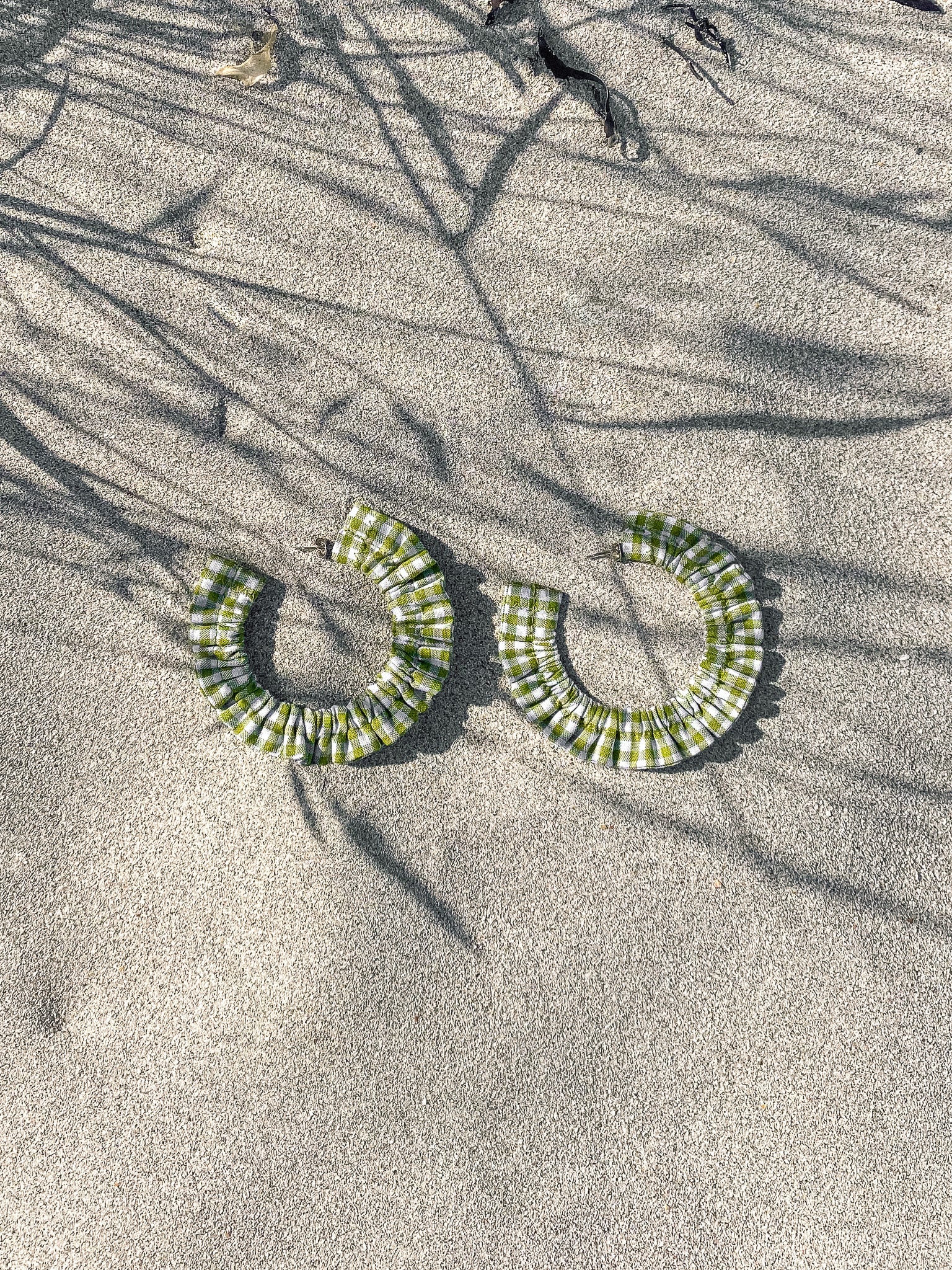 Cotton Scrunchie Earrings - Moss Green Gingham
