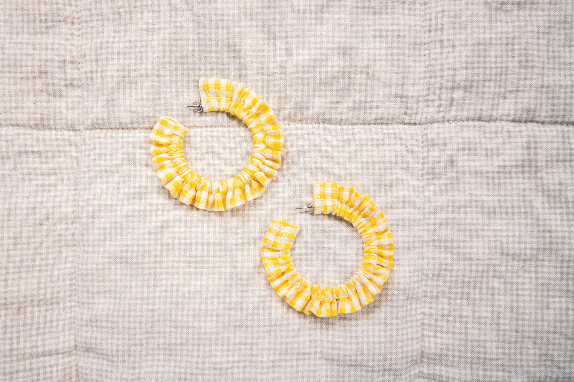 Made from recycled materials, these earrings are made from a red gingham cotton. The metal used for the body of the earring is a hypoallergenic stainless steel.