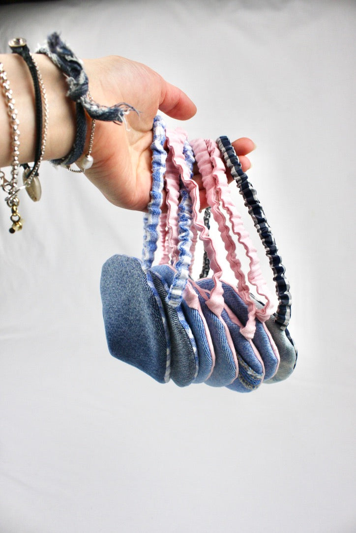 Made using sustainable materials. This eye mask is made from a soft blue cotton gingham and a soft denim and is padded with a soft cotton wadding. Finished with an elasticated band.